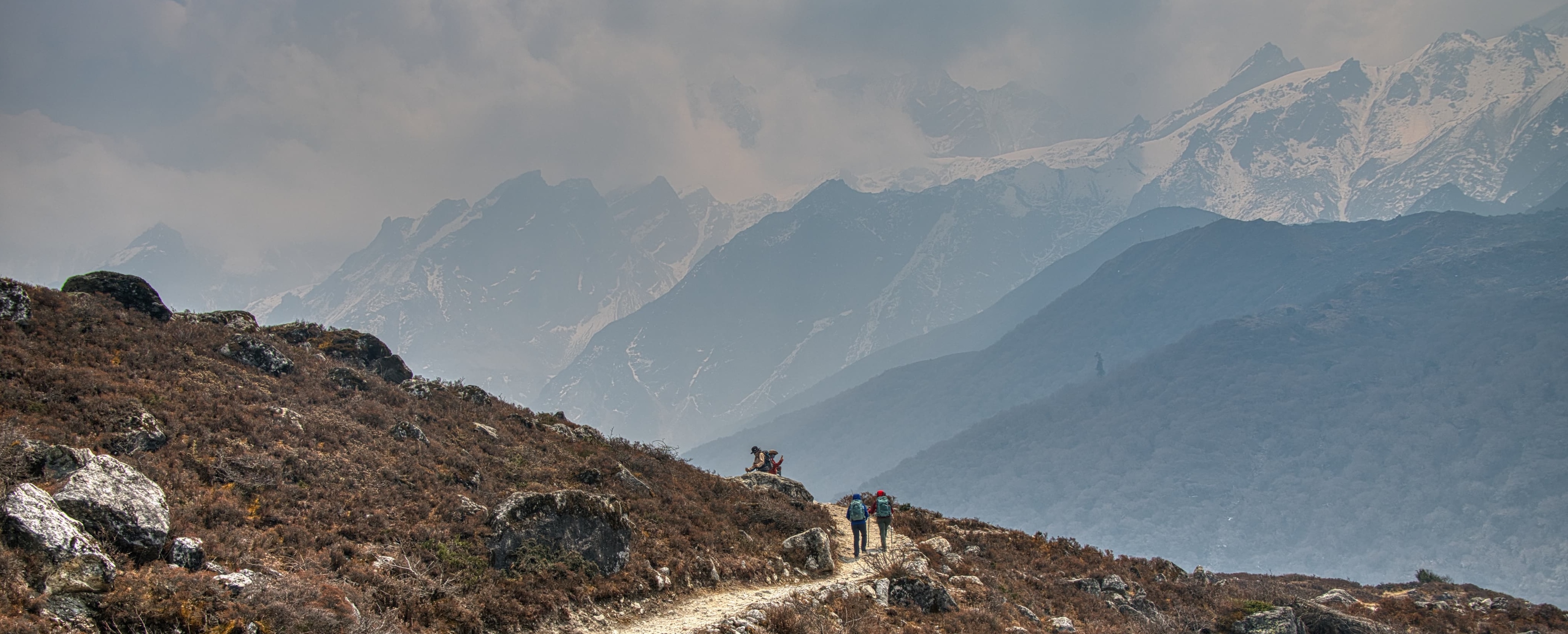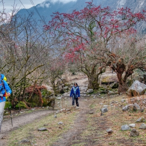 Langtang extends north of Kathmandu to the Tibetan border and attracts far fewer trekkers than Nepal’s other main trekking areas of Everest and Annapurna. The trek passes through magnificent forests home to the endangered red panda, himalayan black bear and musk deer. The Langtang valley then opens out to an alpine plateau with fine views of Langtang and Ganesh Himal. From lodges at Kyangin Gompa you can explore the impressive glaciated upper valley surrounded by high Himalayan peaks. The trek up to Gosainkund takes you through the high alpine zone and then we cross the Laurebina La pass adorned with Buddhist prayer flags. From here we have classic ridge top trekking through meadows and forests to descend into the Helambu valley with superb views north to the Himalayas.